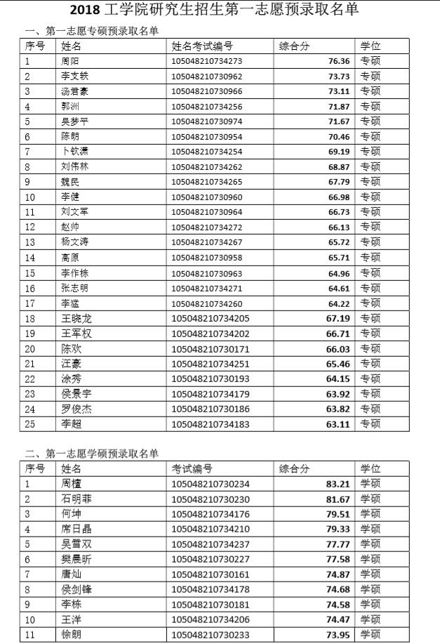 2018 篮球比分雷速 研究生招生第一志愿预录取名单