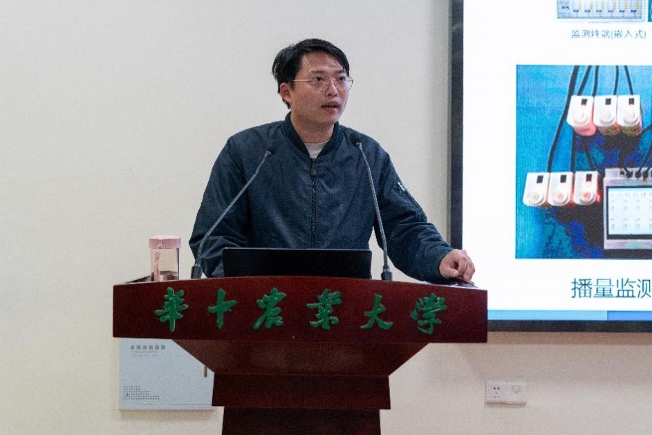 陈礼源向同学们介绍了其主要研究方向:优化播种监控电路,构建油菜播种质量监控云存储模式,创制油菜宽幅播种监控系统与装备,创新宽口径的种子通用流感知方法等。并且陈礼源还从课题组的前期的准备、方案的提出、结构的设计与过程的优化再到最后试验的完成与推广进行了分享。同时,陈礼源还向同学们分享了他在2018年的基层支教生活,期间提出了“因地制宜”的方案为山村带来了“信息化”变革。