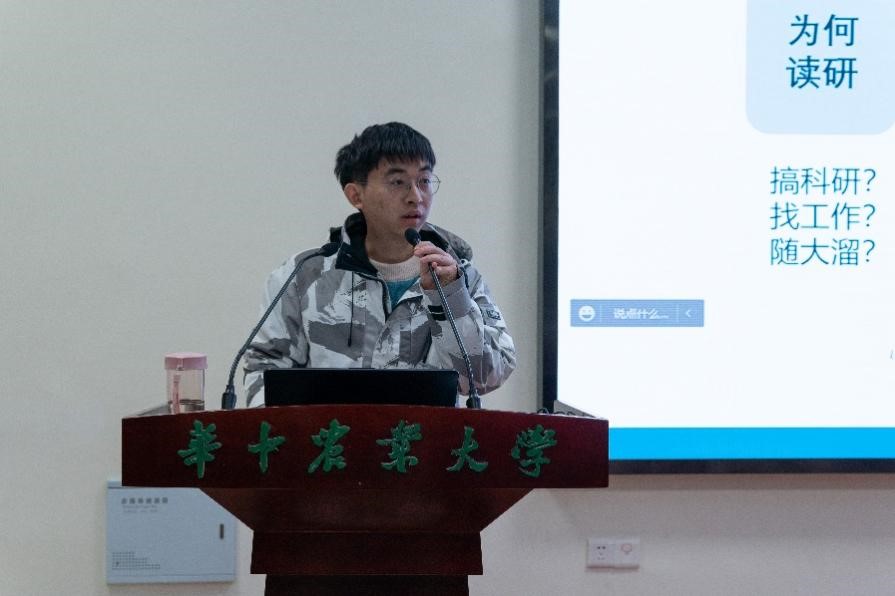 冯椋从个人的科研学习,日常生活等方面进行了分享。他介绍了自己从焦虑迷茫到坚定读研的经历,分享了在科研上的经验:多读文献,学习英语,练习表达能力等。同时强调了:“要早做实验,早写文章,有备无患!”并分享了平衡学习和生活的方法技巧。