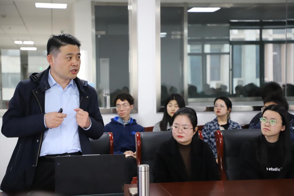 如何智慧的选择就业行业?周海山谈到,最重要的就是要看它是否会长久发展、是否与我们的生活息息相关。他结合自己的工作实际和同学们的研究方向谈到,饲料的生产关乎人们的优质生活,农机企业致力于饲料生产机械设备的研发与销售,有着非常好的发展前景,周海山还向同学们介绍了自己所在企业的现状及未来发展规划,并欢迎同学们加入。