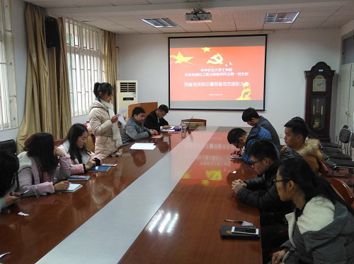 农业机械化工程与装备研究生第一党支部在工程楼A201召开预备党员转正暨预备党员接收大会,支部全体党员和入党积极分子到会。