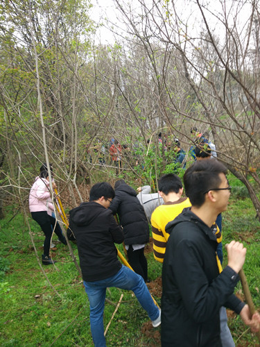 3月17日上午9:40,机制第一党支部全体成员准时在大活圆厅门口集合,一起向活动地点果园出发。在果园负责人的引导与安排下,“志愿者”们各自拿起自己的工具,开始起了“除草”任务。说是除草,其实是将果树旁边的杂树苗“斩草除根”,以免其影响果树的良好生长状态。听起来简单,等真正着手的时候就发现其实很辛苦,表面上只是一棵小树苗,但是它的根深深扎入地下,让“志愿者们”清除起来阻力很大。