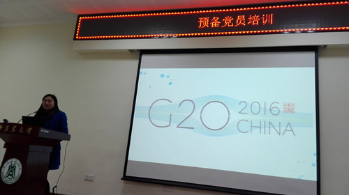 瞿书记的党课主要分为两个部分:1、大学生与政治;2、G20峰会。