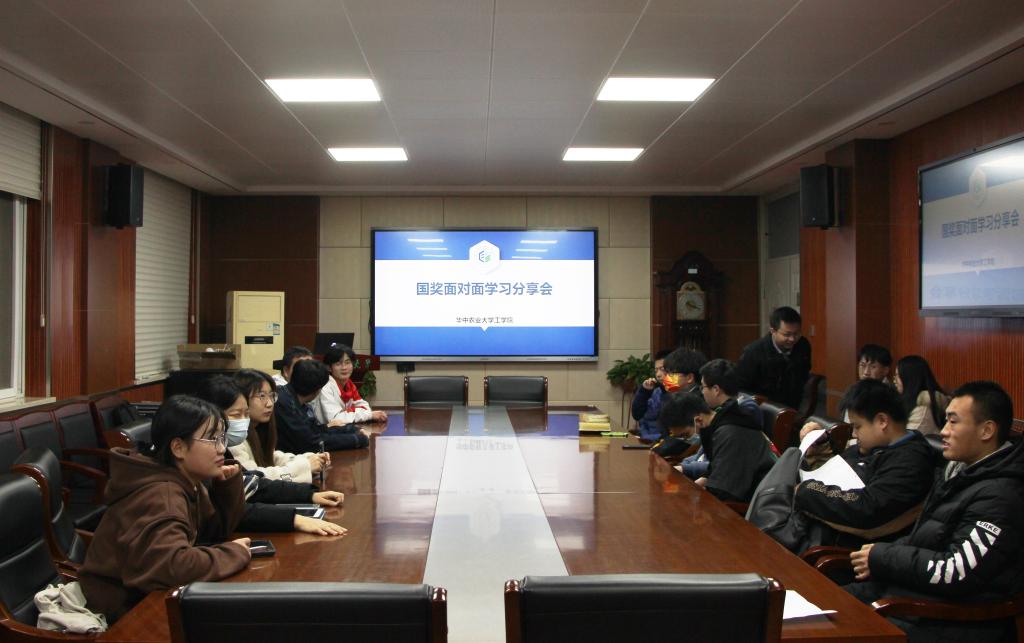 在A201会议室举行国奖面对面学习分享会,2020-2021学年国家奖学金获得者安璇、卞凯与大家分享了自己的奋斗故事。