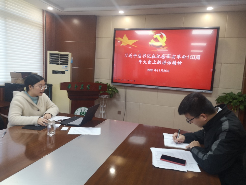 农业生物质增值化技术与装备研究生第一党支部在工程楼A201以“聚焦六中全会,牢记使命担当”为主题开展11月份支部主题党日活动,集中学习十九届六中全会精神、习近平总书记在纪念辛亥革命110周年大会上的讲话精神、《华中农业大学党支部工作细则(2021年修订)》等内容。