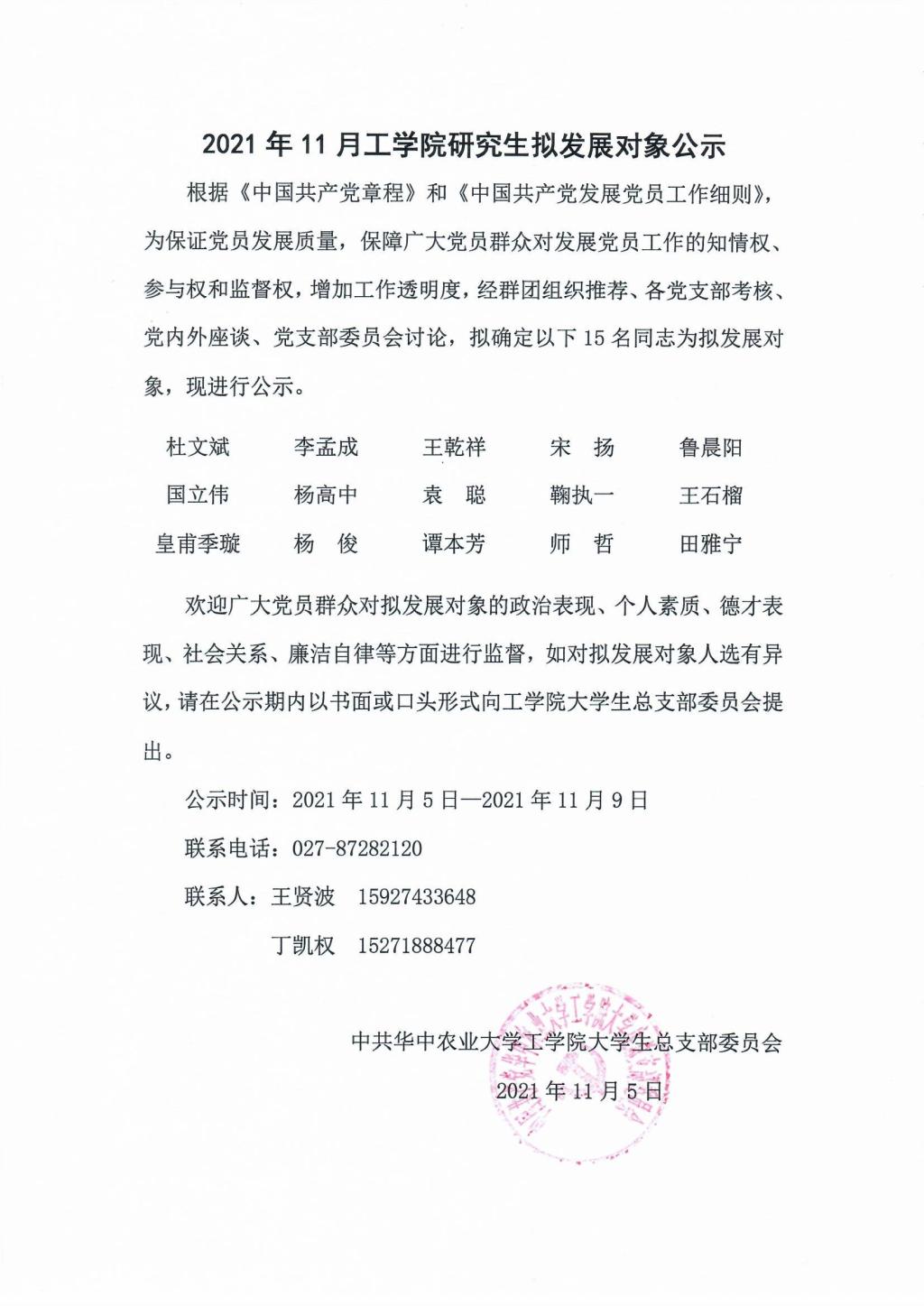 【研】2021年11月篮球比分雷速 研究生拟发展对象公示