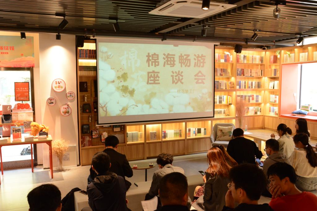 于倍阅书店联合开展“棉海畅游”座谈会,让同学们近距离欣赏棉花之美,感受农耕文化。