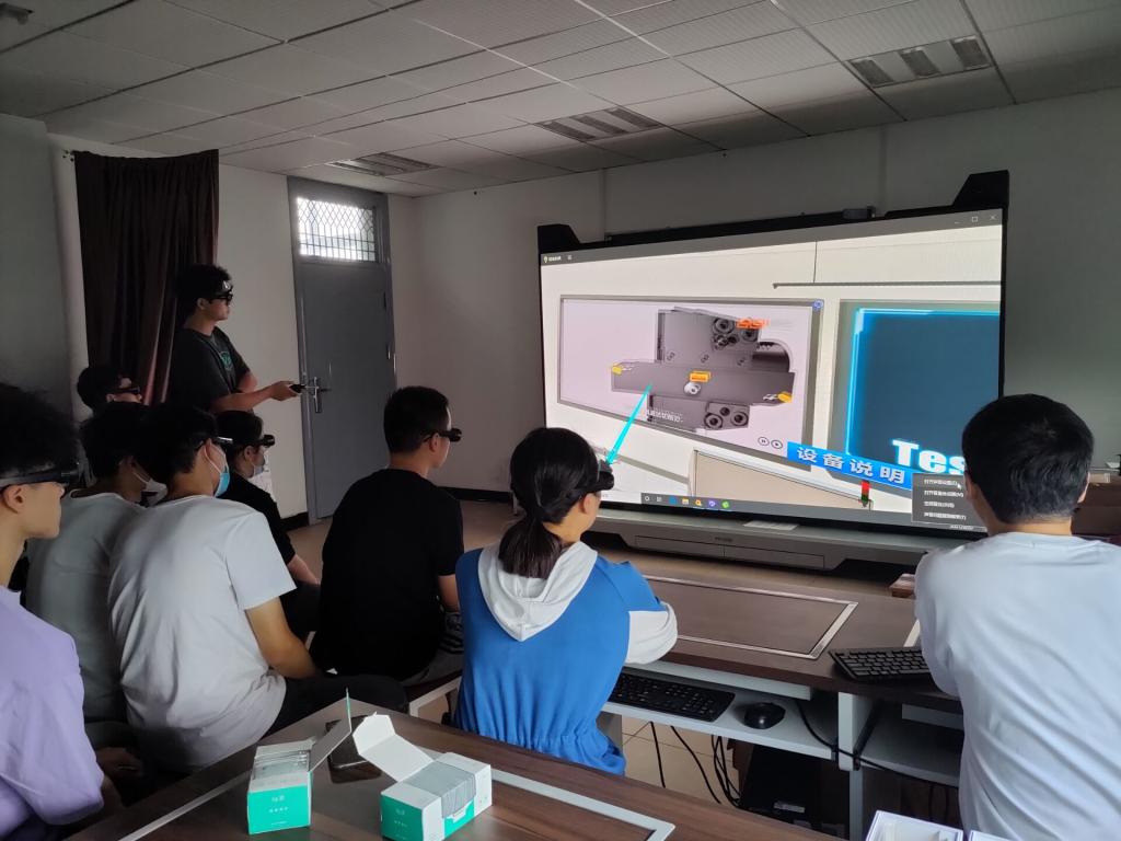 最后一场的虚拟仿真活动,实验室构建了智能机器人、玉兔号、飞机发动机等大型机械的拼装场景。新生通过佩戴3D眼镜就能体验3D拼装的整个过程。负责本次活动的李旭荣老师介绍到:“在传感设备的帮助下,虚拟仿真实验可以让同学们坐在教室,就能全方位的接触各种高端器械结构,甚至可以自己模拟操作,对同学们的学习非常有帮助。”一位新生表示:“我十分喜欢这次活动,我感觉在虚拟场景中拼装模型是一次新奇的体验。”