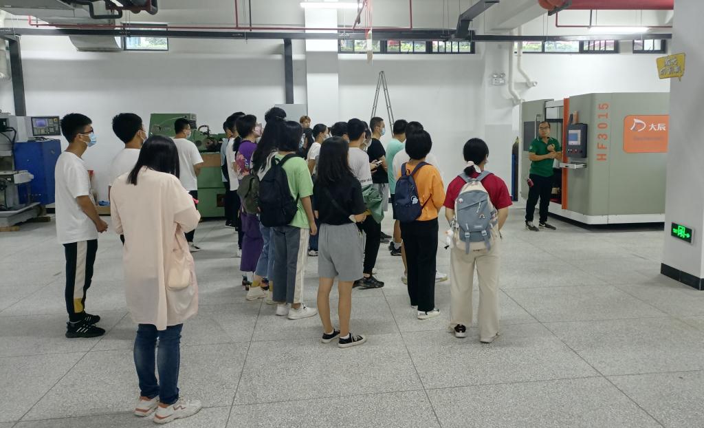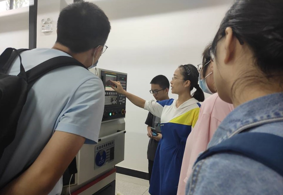 数控加工,顾名思义,就是借助数字控制技术,在机床上进行加工的操作。李旭荣老师首先向新生介绍了数控机床的工作原理,并为新生展示了往年数控加工的成果。在看到那些通过机床加工而成的作品时,新生对机床的操作产生了兴趣。接着,李老师带领新生来到一台数控机床前,给新生们演示具体操作,在李老师的耐心指导下,同学们踊跃体验亲自操作机床的的感觉。21级新生何佳俊表示:“虽然没能做出成品,但是能够近距离观察机器运转,亲自操控机床,也让我有了很多收获,希望将来能进一步学习这方面的知识。”