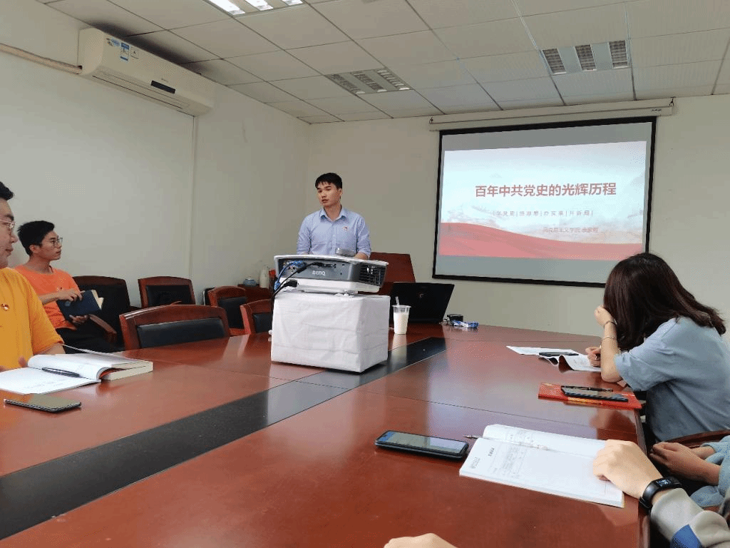 “精讲精读”活动结束后,支部接着开展了五月份主题党日活动。首先,组织委员李楚仪同志带领支部全体同志重温入党誓词;接着,支部书记王岩同志带领全体同志学习《中国共产党普通高等学校基层组织工作条例》;然后,围绕着“百年党史历程”,各小组进行分组领学;最后,组织委员李楚仪同志领学了文件——《党建质量提升源头工程实施方案》(简称《源头工程》)。