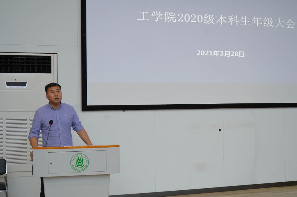 于3月28日在S1报告厅召开2020级本科生年级大会。辅导员卜祥利在会议上强调了生活中的安全隐患问题,并对大一同学的学习状况和未来规划进行了总结并给出可行性建议。