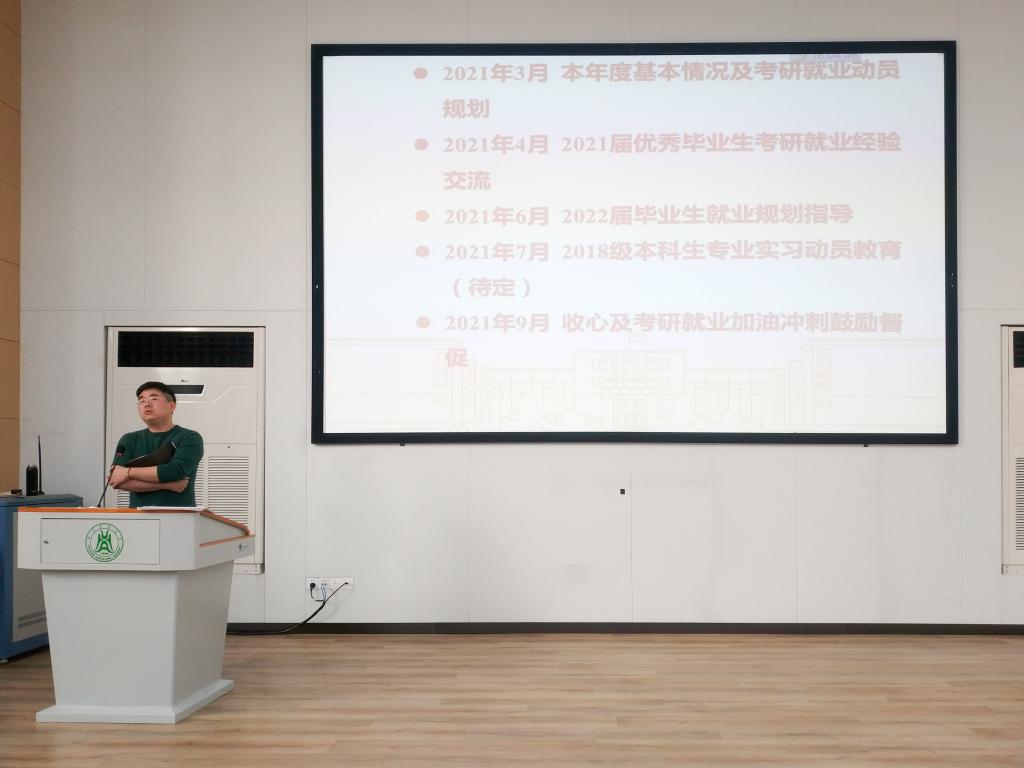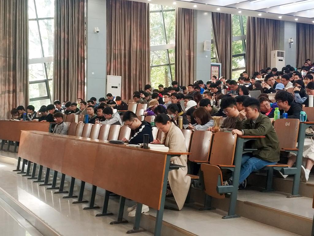 周熙就同学们关心的考研就业问题进行了详细的讲解和举例。他从2018级学生基本情况、四六级成绩、挂科情况等方面,帮助同学们认清现状,提醒大家要制定切实可行的奋斗目标。随后,根据考研就业意向调查问卷收集的结果,向大家梳理了目前同学们的考研就业意向,其中,有300多人有考研意愿,愿意直接就业的同学仅30余人,还有少数同学仍未确定未来目标,而在考研的同学中有一半以上的目标为985院校,但绝大多数同学仍未制定考研计划,周熙对此表示担忧。他希望同学们能更加清楚地确立目标,尽快调整学习状态,制定复习计划并付诸实际行动,否则一切都是空想。