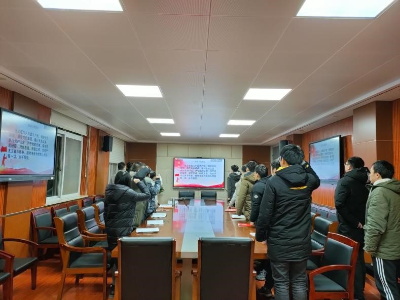 活动最后王宏波同志带领大家重温《党章》,党员同志们认真学习,再次明确党员义务、牢记党员重任。王宏波同志谈到,希望大家今后能够进一步在学习和生活中发挥模范带头作用。活动最后张帅同志做总结发言,他强调,希望大家的理论学习能够常抓不懈,充分调用学习资源,广泛阅读。同时他也向支部党员送上新年祝福,祝福大家新年新气象,万事胜意,勇攀高峰。