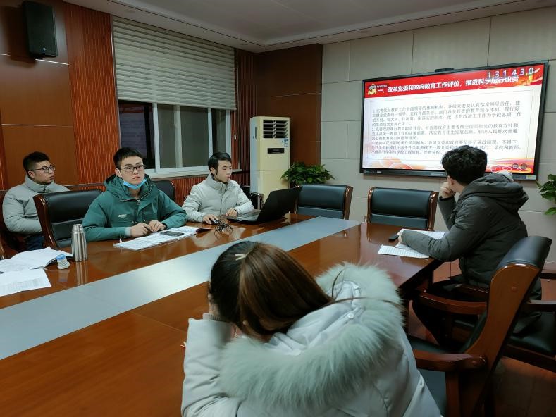 张帅同志带领党员同志们学习了《总体方案》的总纲、指导思想及主要原则三个方面。张帅同志谈到“五中全会提出2035年建成教育强国,丰富了2035年基本实现社会主义现代化的内涵。深化新时代教育评价改革,使命光荣、责任重大,对于全面贯彻党的教育方针、加快推进教育现代化、建设教育强国、办好人民满意的教育具有重大意义。”接着他进一步解释了《总体方案》的主要原则:《总体方案》的基本定位是坚持以立德树人为主线,以破“五唯”为导向,以五类主体为抓手,着力做到政策系统集成、举措破立结合、改革协同推进。牢记为党育人、为国育才使命,坚持社会主义办学方向。《总体方案》充分考虑教育评价改革的艰巨性、长期性,着眼于与中国教育现代化总体进程相适应,分两个阶段提出深化新时代教育评价改革的目标。第一阶段:经过5至10年努力,各级党委和政府科学履行职责水平明显提高,各级各类学校立德树人落实机制更加完善,引导教师潜心育人的评价制度更加健全,促进学生全面发展的评价办法更加多元,社会选人用人方式更加科学。第二阶段:到2035年,基本形成富有时代特征、彰显中国特色、体现世界水平的教育评价体系。