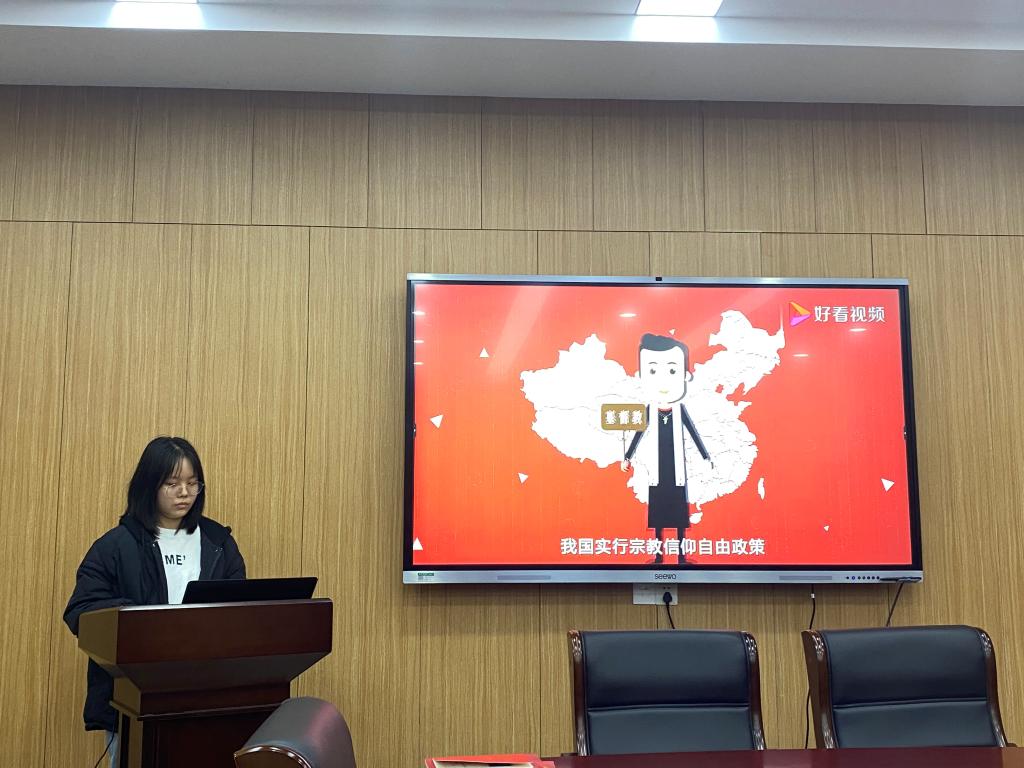 刘靖怡同志领学“共产党员不能信教是政治纪律”