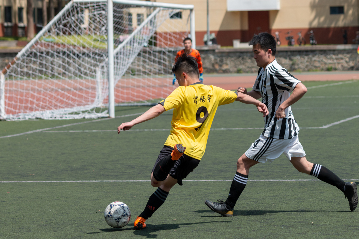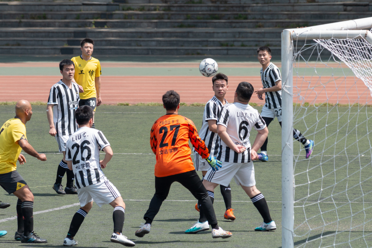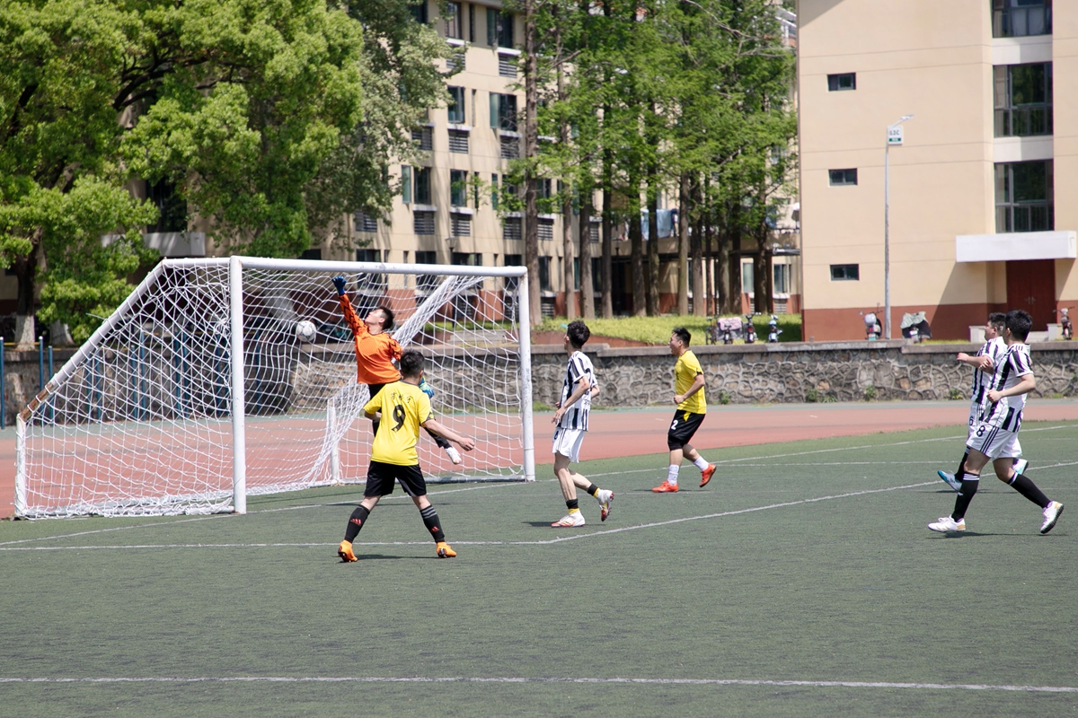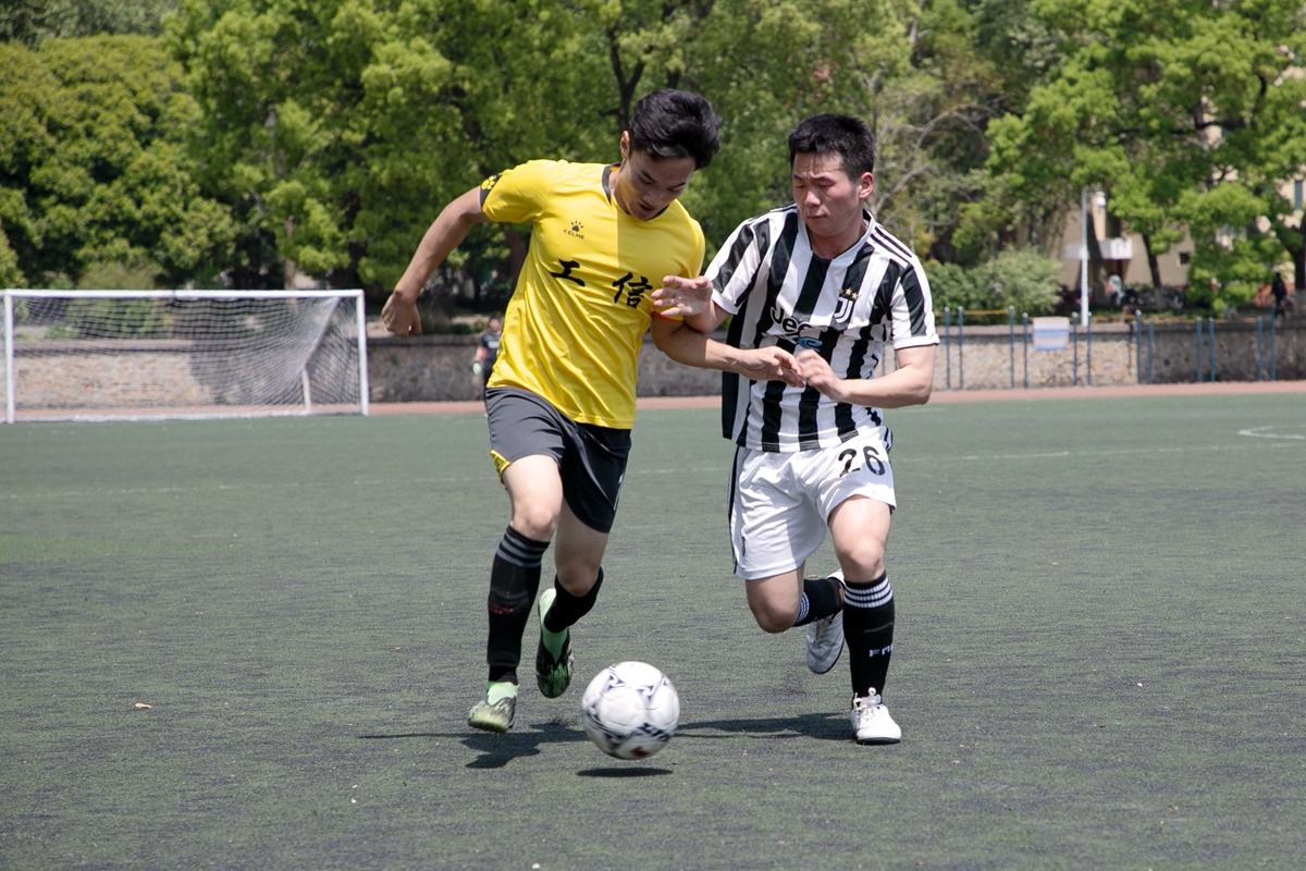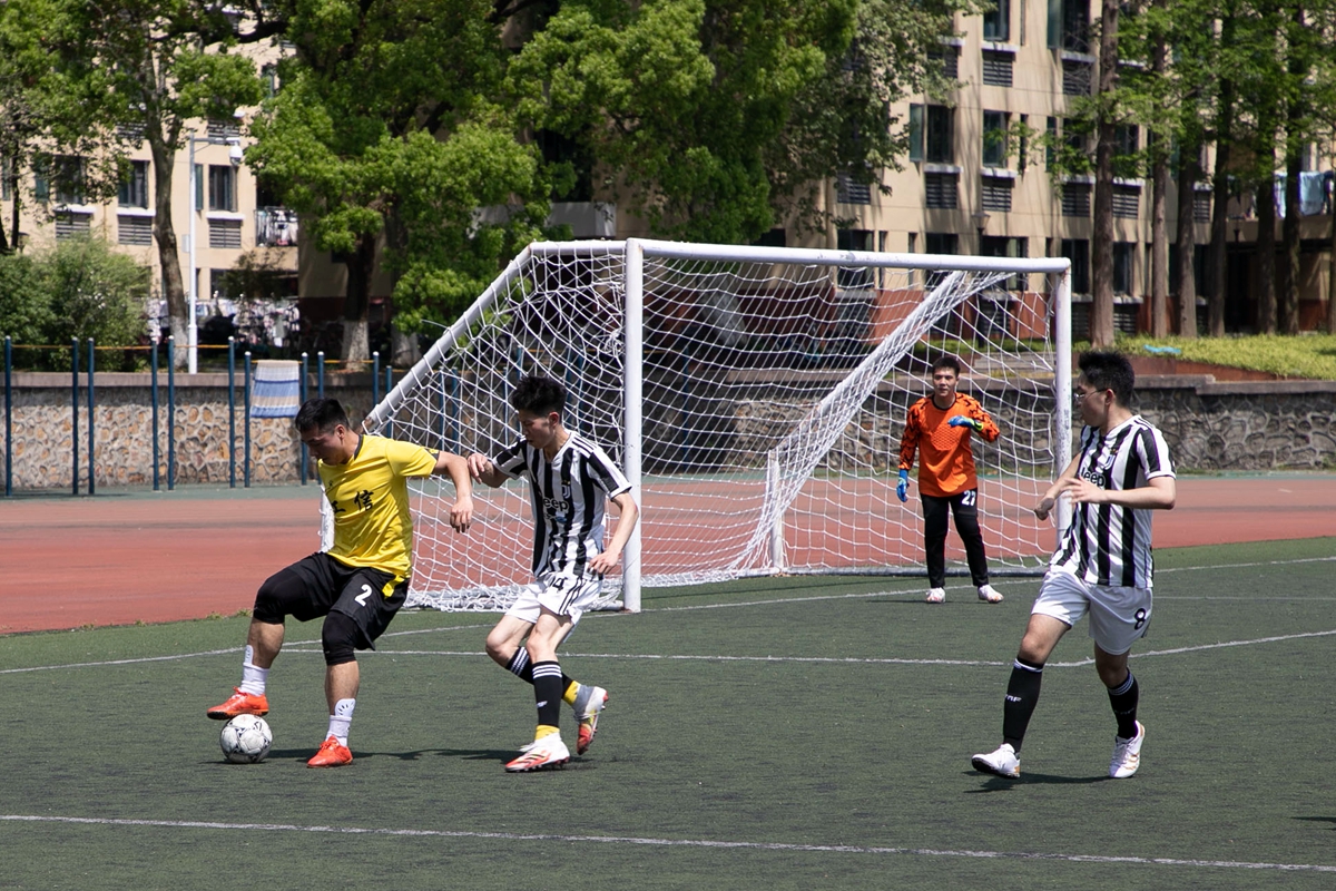 4月7日中午,2022“狮子山杯”足球赛(研究生)男足小组赛继续进行。在西运动场一场比赛中,身着黄色球衣的篮球比分雷速