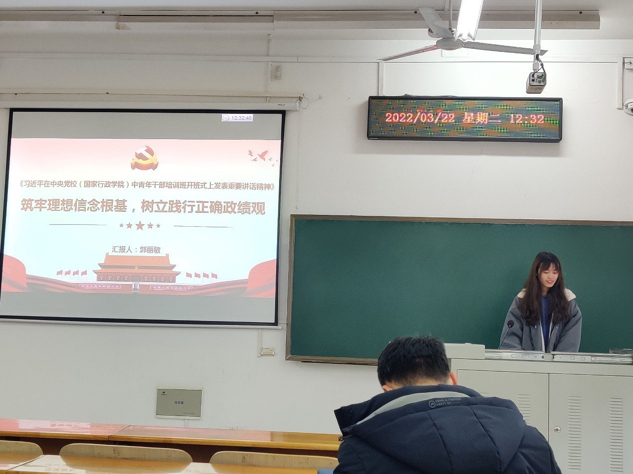 能动自动化本科生党支部在三教B201教室开展三月主题党日活动,支部党员深入学习贯彻习近平新时代中国特色社会主义思想,学习贯彻党的十九届六中全会精神和第二十七次全国高校党建工作会议精神,会议由须吴潇同志主持,支部全体党员参加会议。