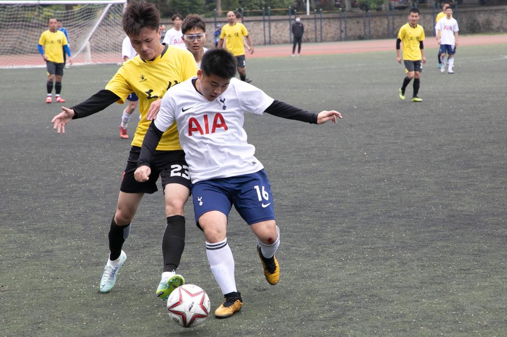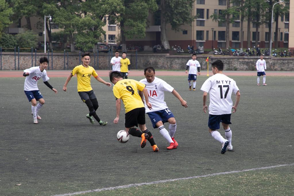 面对开场不久的失利,工信队顶住压力,积极组织反攻。第12分钟,工信队25号球员余展晖瞅准机会,直接将球传给禁区附近的7号球员沈威,沈威果断处理,直接打门,1:1,工信队将比分拉平,全场呼声沸腾,气氛热烈。