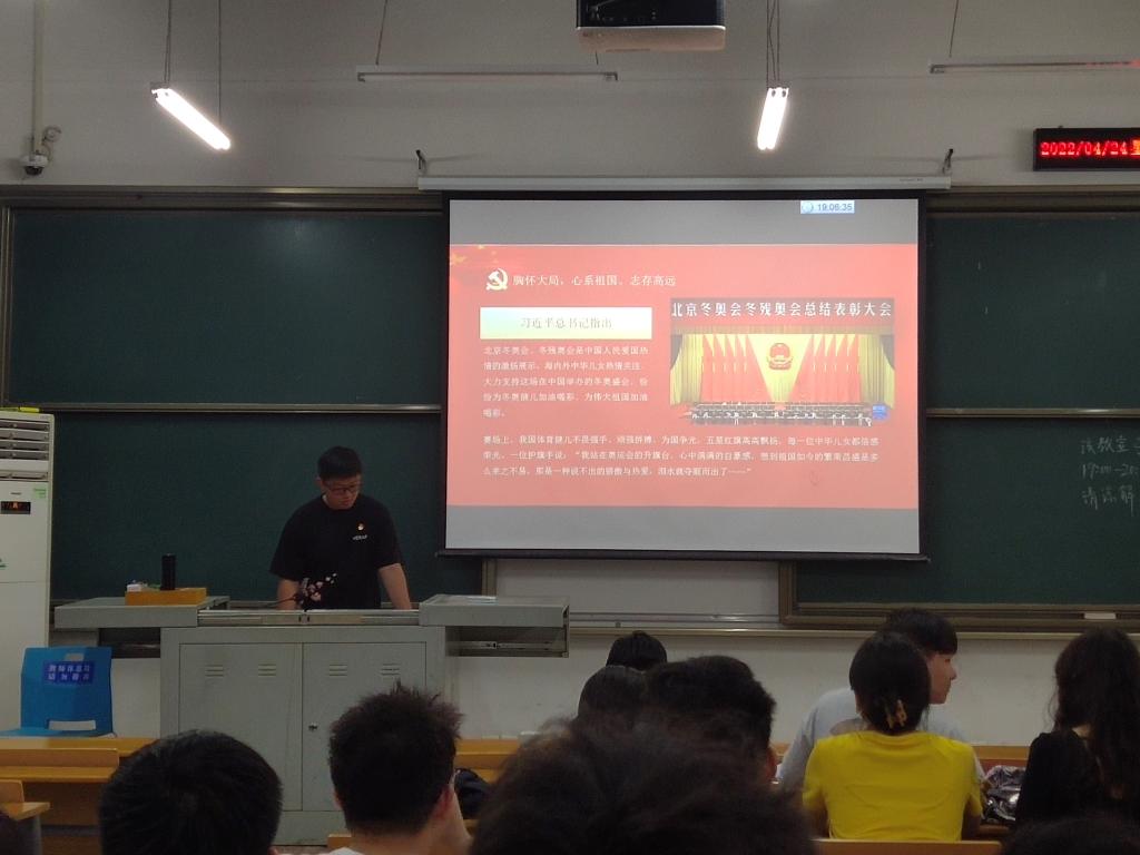 (通讯员 顾一忱)4月24日晚,机械化本科生党支部在四教C111教室开展主题党日活动,学习习近平总书记在北京冬奥会、冬残奥会总结表彰大会上的讲话精神以及乡村振兴的相关知识。支部全体党员参加会议,会议由张春雨同志主持。