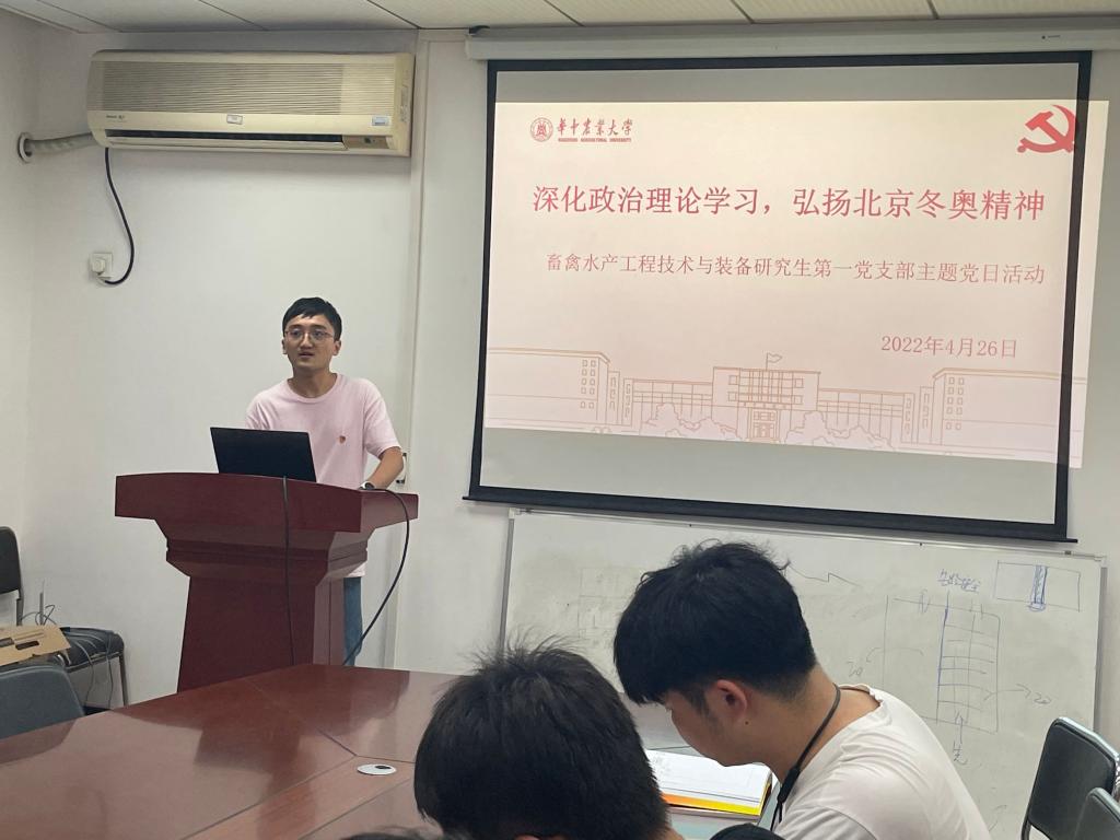 畜禽水产工程技术与装备研究生第一党支部在工程楼B422开展主题为“深化政治理论学习,弘扬北京冬奥精神”的主题党日活动。