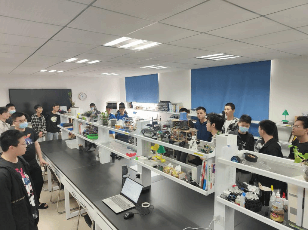 参观活动中,机器人实验室负责人卫佳老师和主要成员分别介绍了自主导航小车、写字机器人和切割机器人等科研成果和最新项目进展;黄成龙老师介绍了自主研发的高通量作物根系自动化测量系统、智能棉花打顶机器人、田间表型智能感知机器人、机械臂三维结构光系统、高精度Micro-CT系统;刘洁老师介绍了柑橘果园的苗钵装填机械、果园开沟机械、农药喷施机械、果枝修剪机械等研究成果。参观学习后,师生们更换装备,在学校东体育馆的羽毛球场进行了热情洋溢的师生羽毛球友谊赛。