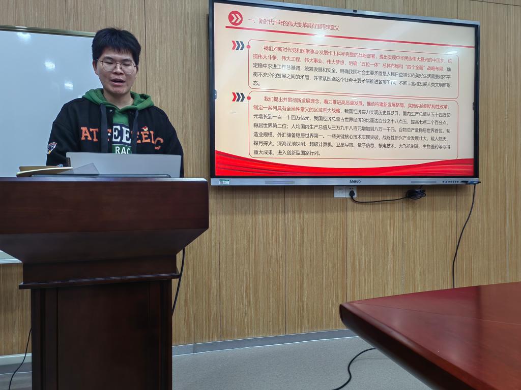 黄朕好同志领学“坚持科技是第一生产力,人才是第一资源,创新是第一动力”相关内容时提到,教育、科技、人才是全面建设社会主义现代化国家的基础性、战略性支撑。作为一名研究生党员,我们应当肩负起自己的历史使命,把研究方向与国家发展需求结合起来,夯实基础并敢于创新,助力我国从人才大国向人才强国迈进。