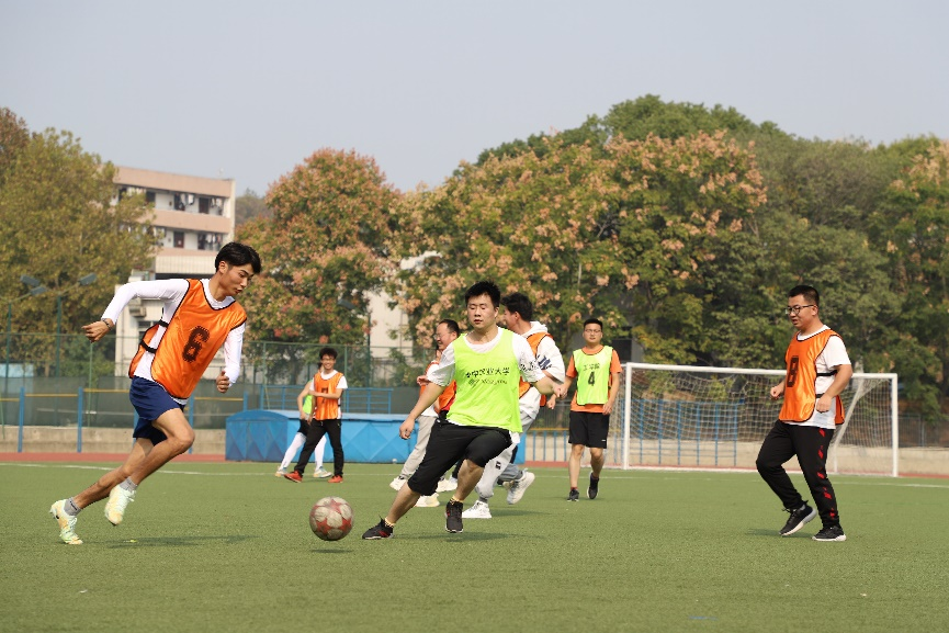 而另一场比赛同样激烈,农产品团队邀请到球技精湛的何恩康等老师,打进五球,油菜团队廖宜涛老师和肖文立老师也与学生配合默契,各进一球,最终农产品团队以5:3战胜油菜团队。