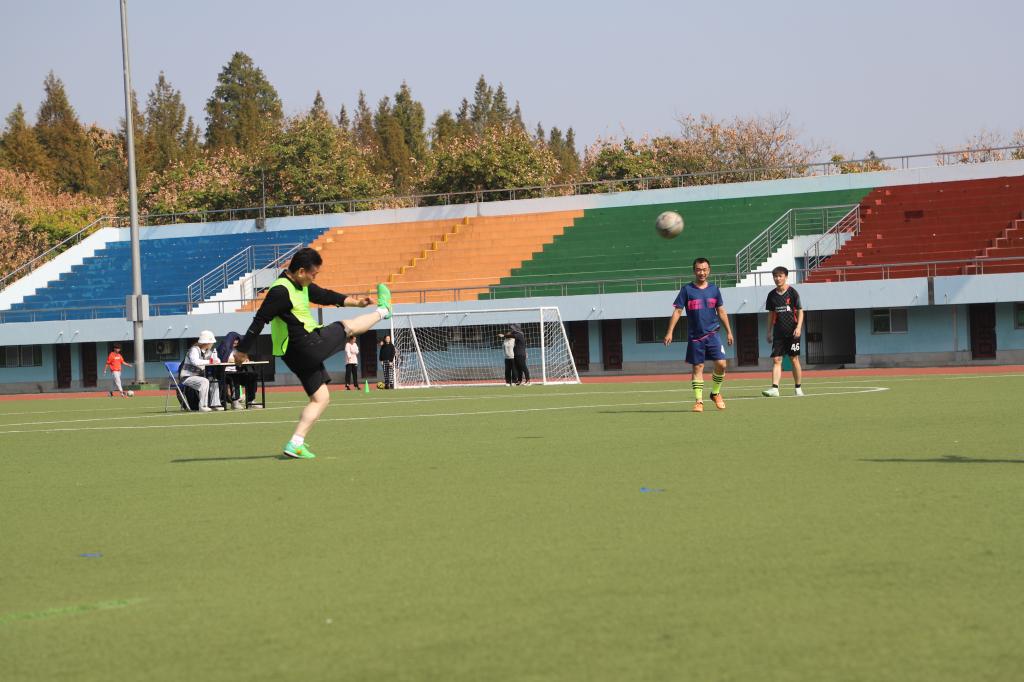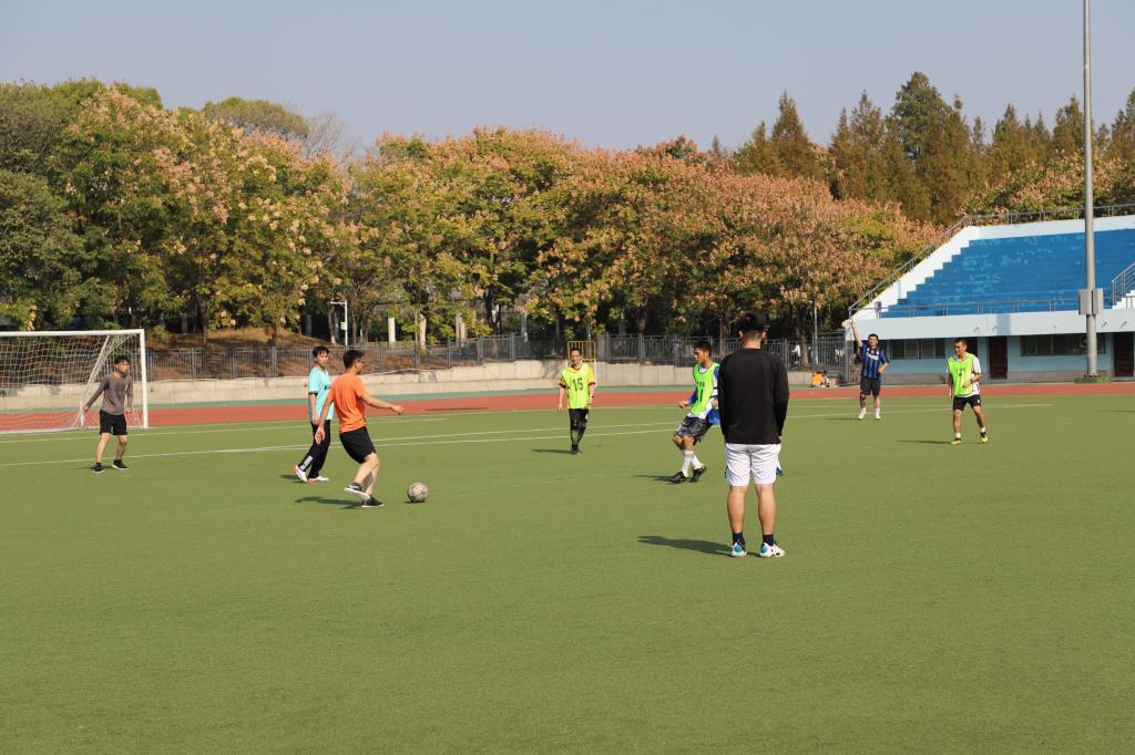 六个科研团队的90余名师生组成六支队伍开展8人制足球赛,并通过小组赛和排位赛进行排名,女子趣味接力赛三人为一组,三人配合接力完成带球、传球、射门后再带球射门等规定动作后计时排名。女子接力赛共有21名女生组队参加,余飞燕、黄庆兰、张妍妍小组以全程28.31秒,获得了女子足球趣味接力赛第一名。