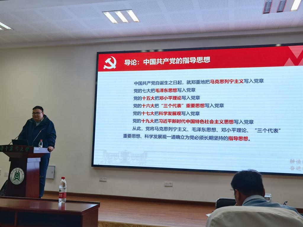 辅导员谭力铭老师为党校学员授课。本次课程的主题为“中国共产党的指导思想”。