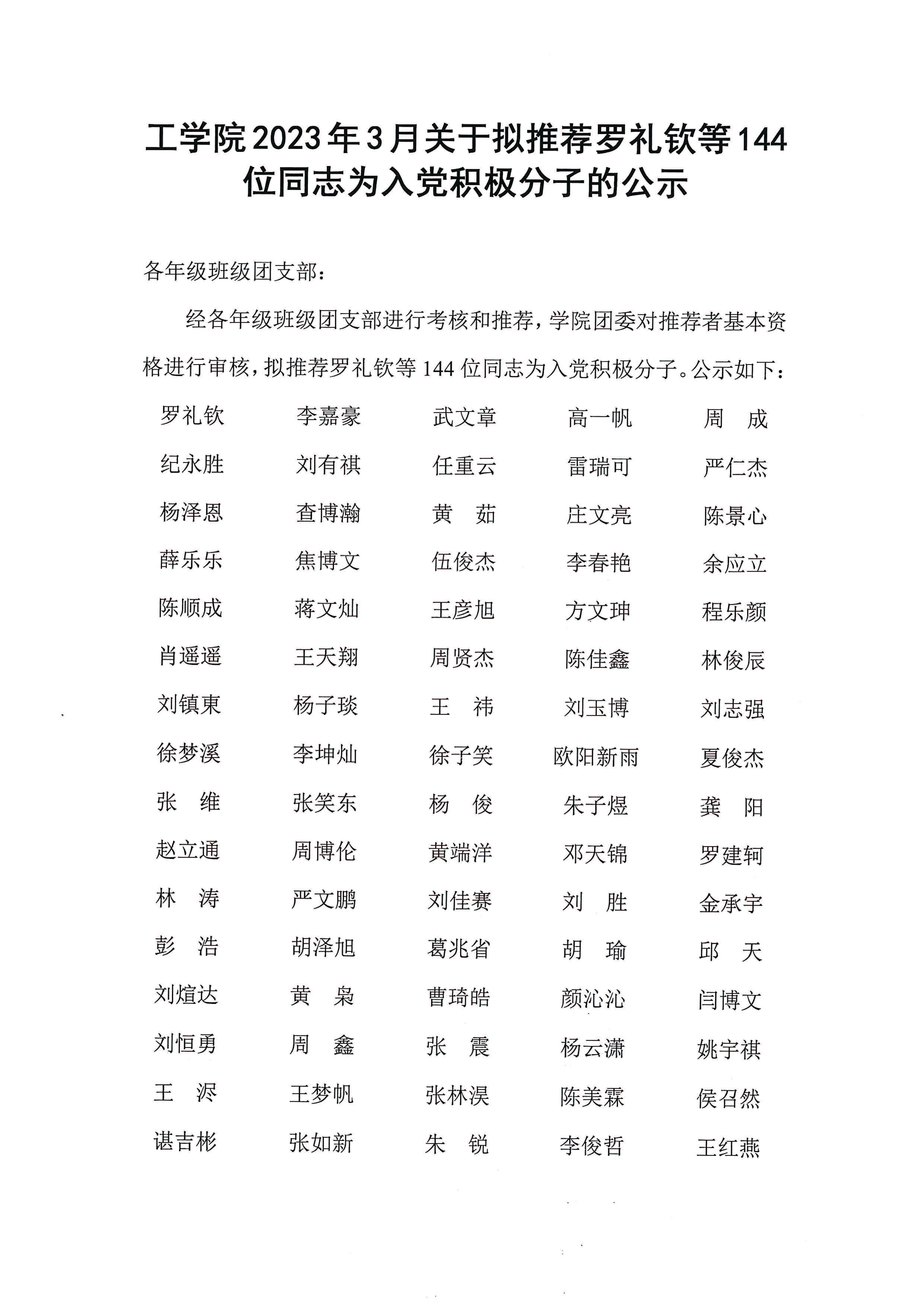 篮球比分雷速 2023年3月关于拟推荐罗礼钦等144名同志为入党积极分子的公示