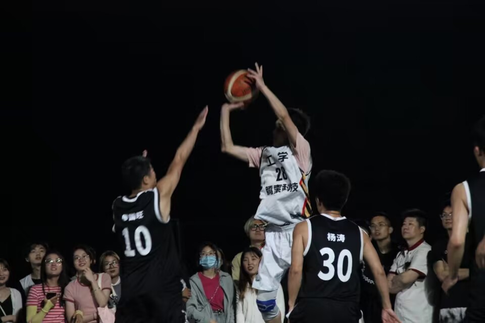 “狮子山杯”篮球赛中,随着主裁判的一声哨响,比赛开始,双方进行跳球争夺。开局工学3号崔前锦和14号魏函志接到内线一传连续快攻反击三分打进,内线与外线之间的联动打出9-0的小高潮。随后生科篮球比分雷速
