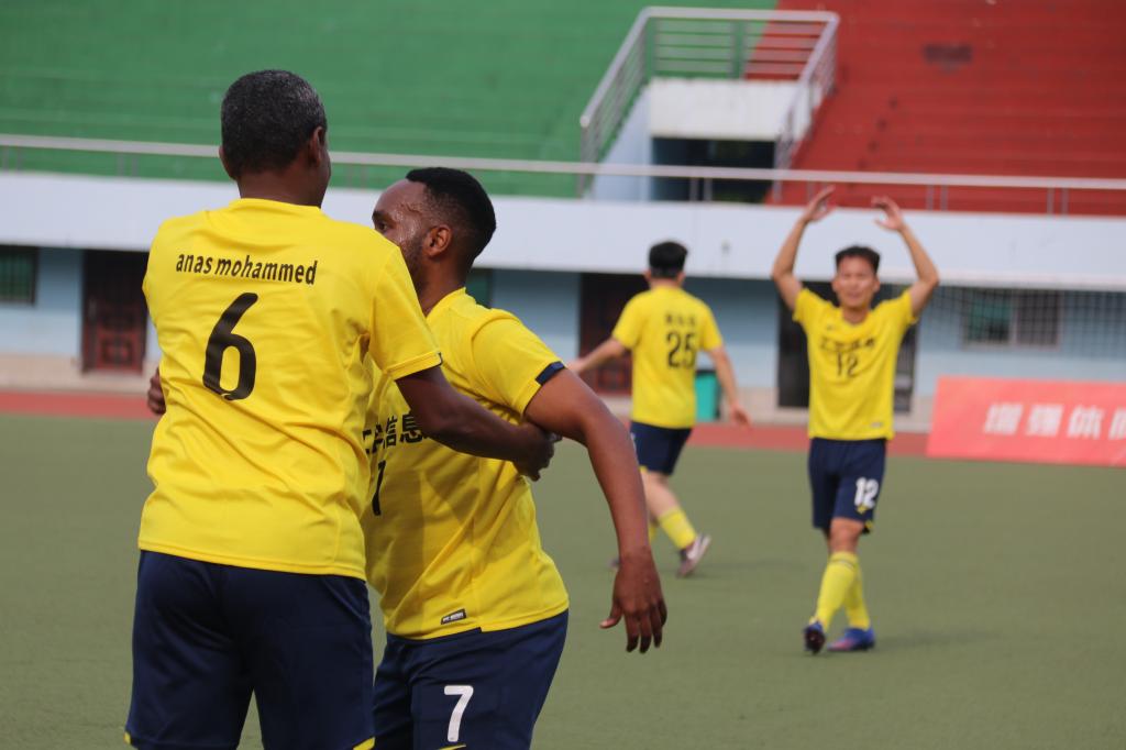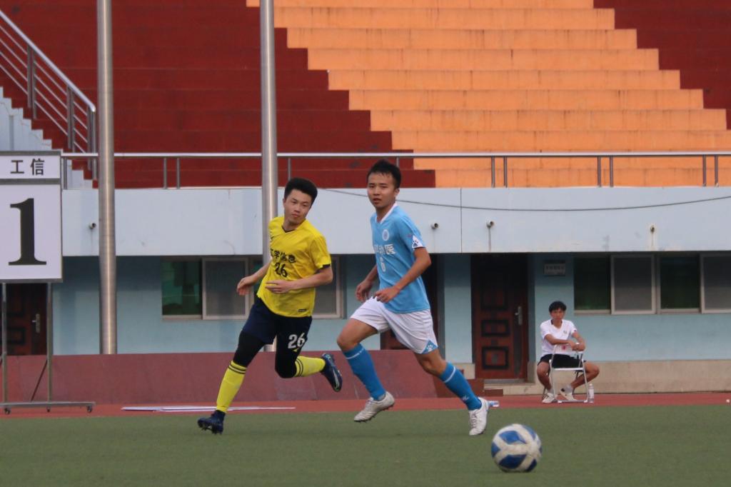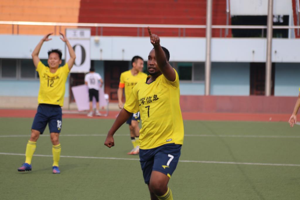 王定一带球晃过出击的门将,射门得分,工信联队被扳平比分。