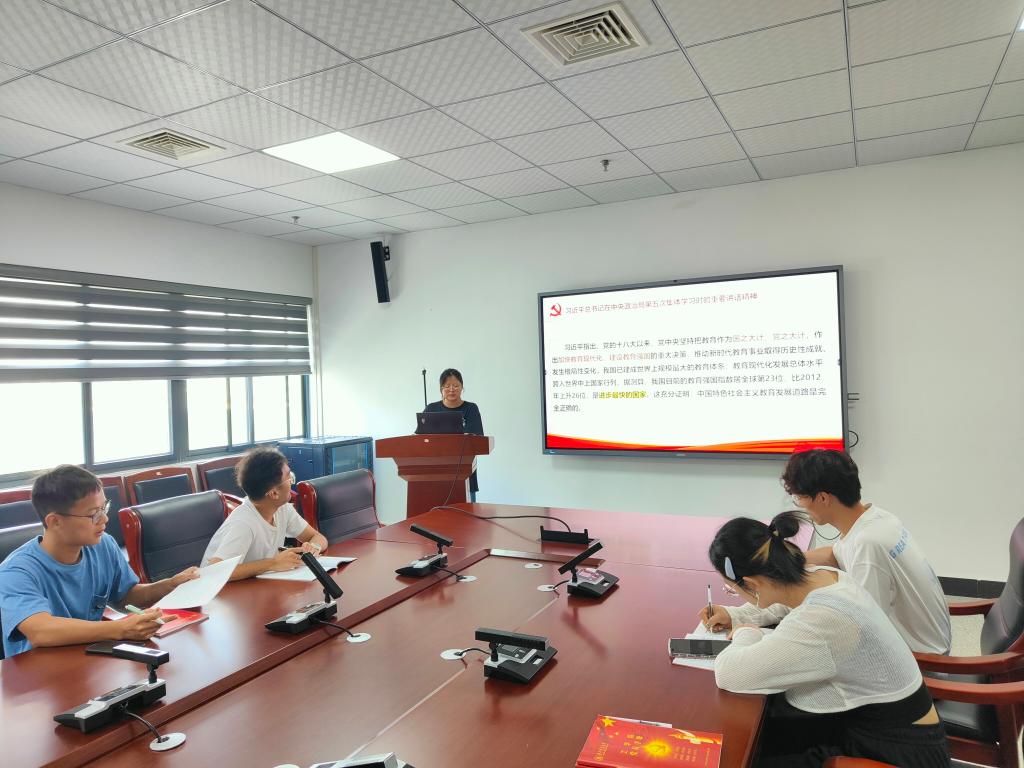 路开新同志领学习近平总书记在中央政治局第五次集体学习时的重要讲话精神等内容,她谈到,教育兴则国家兴,教育强则国家强。我们要以习近平总书记重要讲话为指引,积极投身教育强国实践,为全面推进中华民族伟大复兴提供有力支撑。学习贯彻习近平新时代中国特色社会主义思想和党的二十大精神,要坚持学思用贯通、知信行统一,坚持解放思想、守正创新,紧密联系工作实际和思想实际,切实把学习成果运用到实际工作中,推动工作开展。
