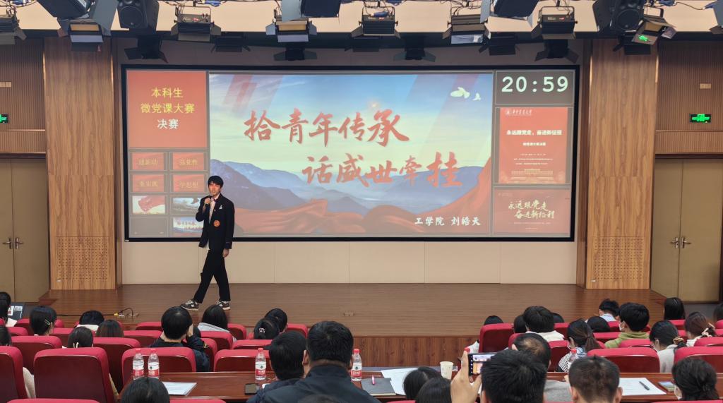 刘皓天结合自己在大学的成长经历以《拾青年传承,话盛世牵挂》为题进行了微党课讲述。伴随着舒缓轻和的音乐,我们跟着刘皓天同学的声线一起,回到了一百多年前那个风雨飘摇的年代,在“五四运动”的队伍中我们看到了赵世炎,听到他心底牵挂的是真理与革命;时间的洪流滚滚向前,我们来到了十五年前,为年仅8岁的肖远思立志从军而感到欣慰,也为24岁的肖思远永远成为了祖国的界碑而无比动容,听到他心底牵挂的是边疆安全与国家尊严;视线回到华农,“本禹精神”在一代又一代青年志愿者的手中接力,我们看到了他们耕耘的身影,听到他们心底牵挂的是孩子们一双双求知的眼睛……