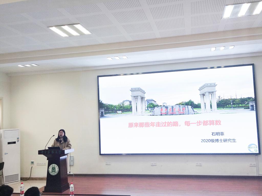 “原来那些年走过的路,每一步都算数。” 这是石明菲对自己科研生活的评价,从本科到研究生,再到博士,她一直在沼液中氨氮的膜蒸馏回收性强化研究领域刻苦钻研。带着对科研的热爱与憧憬,她选择了硕博连读。读博期间她始终保持着对科研的热忱,一如既往在实验室的土壤中努力耕耘。在分享学习和成长经验时,她谈到,要多参加会议,争取做学术报告,把握各种机遇,勇敢地去学习、去做。“志之所驱,无远弗届,穷山距海,不能限也。志之所向,无坚不入,锐兵精甲,不能御也。”石明菲表示,不管在何种境遇,只要有远大的志向和坚定的意志,一切问题都会迎刃而解。