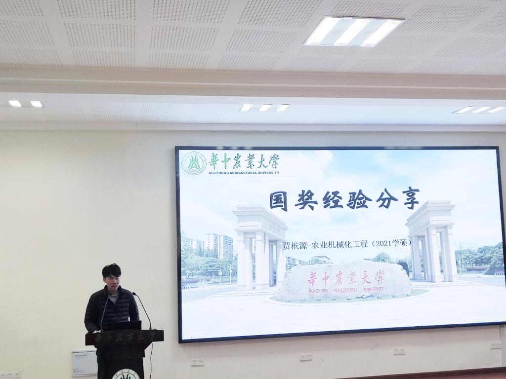 在分享自己的学习生活感悟时,他向同学们提出了五点建议。一是学习成绩,优秀学习成绩是获得国家奖学金的基础,要努力学习,积极参加课堂讨论和课堂活动。二是主动出击,自己主动寻找科研课题、比赛等进行探究和实践,提高研究能力和创新意识,为以后的科研之路做准备。三是活动拓展,在团队和课题组展现个人优势和特长,积极参加研会、志愿服务等活动。四是关注政策,提前了解国家奖学金评选的政策和标准,准确把握自己在评选中的位置,根据自己的实际情况准备申请材料。五是多掌握一些学习辅助软件,辅助软件的使用能提高学习效率。在撰写论文方面,贾槟源师兄谈到在实验开展前,要明确研究对象和目的,过程中遇到问题是正常的,我们需要大量阅读文献,站在审稿人角度去审阅,同时还需要积极与导师沟通,始终保持严谨谦虚的态度。