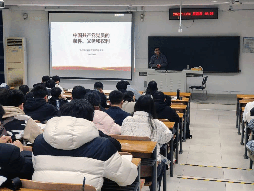 在三教B205开展第84期党校培训,学校党委巡查工作办公室主任胡守强老师为入党积极分子们讲授“中国共产党的党员条件、义务和权利”的专题党课。