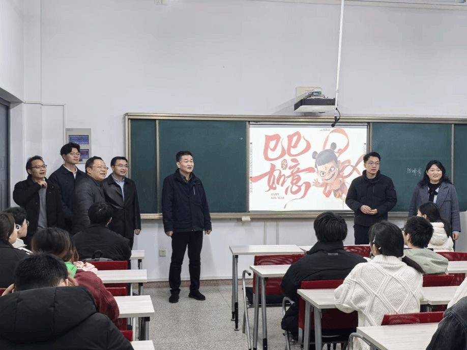 党委书记明庭庆等领导班子成员、各班班主任与全体辅导员深入班级,为同学们送去新春的祝福与新学期的鼓励。