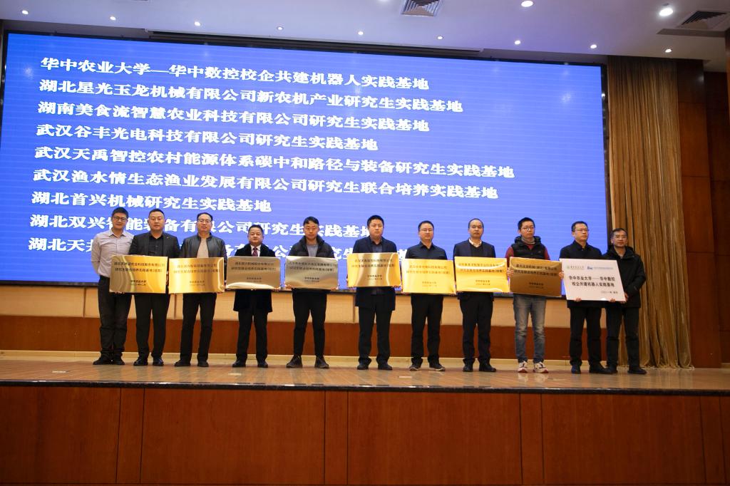 为湖北星光玉龙机械有限公司等9个实践基地授牌,为中联农业机械股份有限公司副总裁高一平等31位企业家颁发企业行业导师聘书。