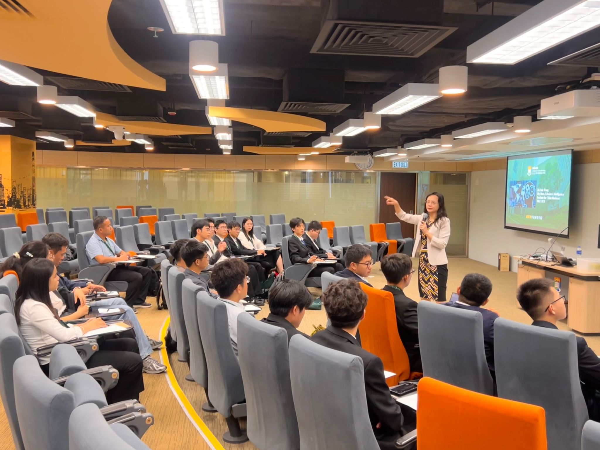 访学期间,为全面了解香港城市建设现状与科技创新前沿,师生一同前往展城馆、生产力促进局等地,参观了配备自动驾驶系统的四翼无人机、智能储能设备及电车充电小车等前沿科技产品。生产力促进局专家介绍了从内地引进人才并进行后续培养的全流程。顾泽宇同学表示,对香港的人才培养体系有了更深入的认识,也表达了未来赴港就业发展的强烈意愿。