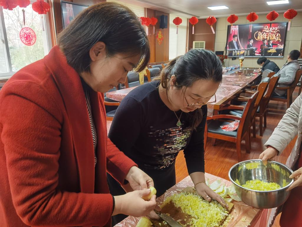 活动现场,师生们纷纷在“送祝福·畅未来”心愿墙上贴上对祖国、学校、老师、父母和自己的祝福,内心充满了对未来的期待;在“猜灯谜·迎新年”区域,师生们对着一个个灯谜,饶有兴趣地破译谜面;还有师生在包饺子诉情谊,师生融乐的交流声与央视直播的音乐声相互映衬,现场的氛围格外温馨热烈。