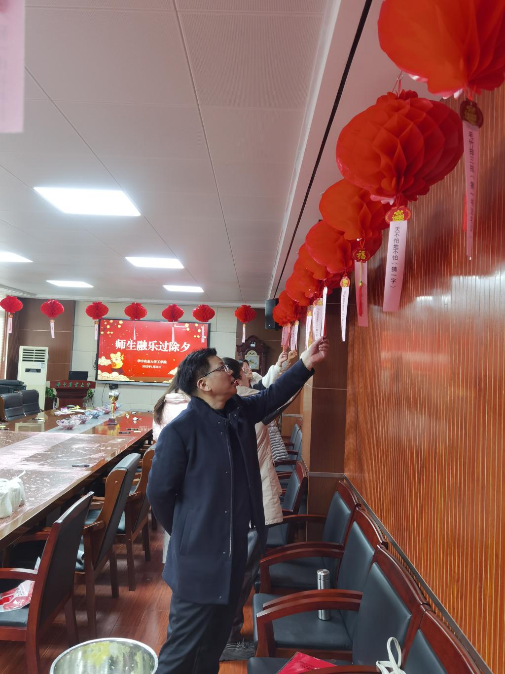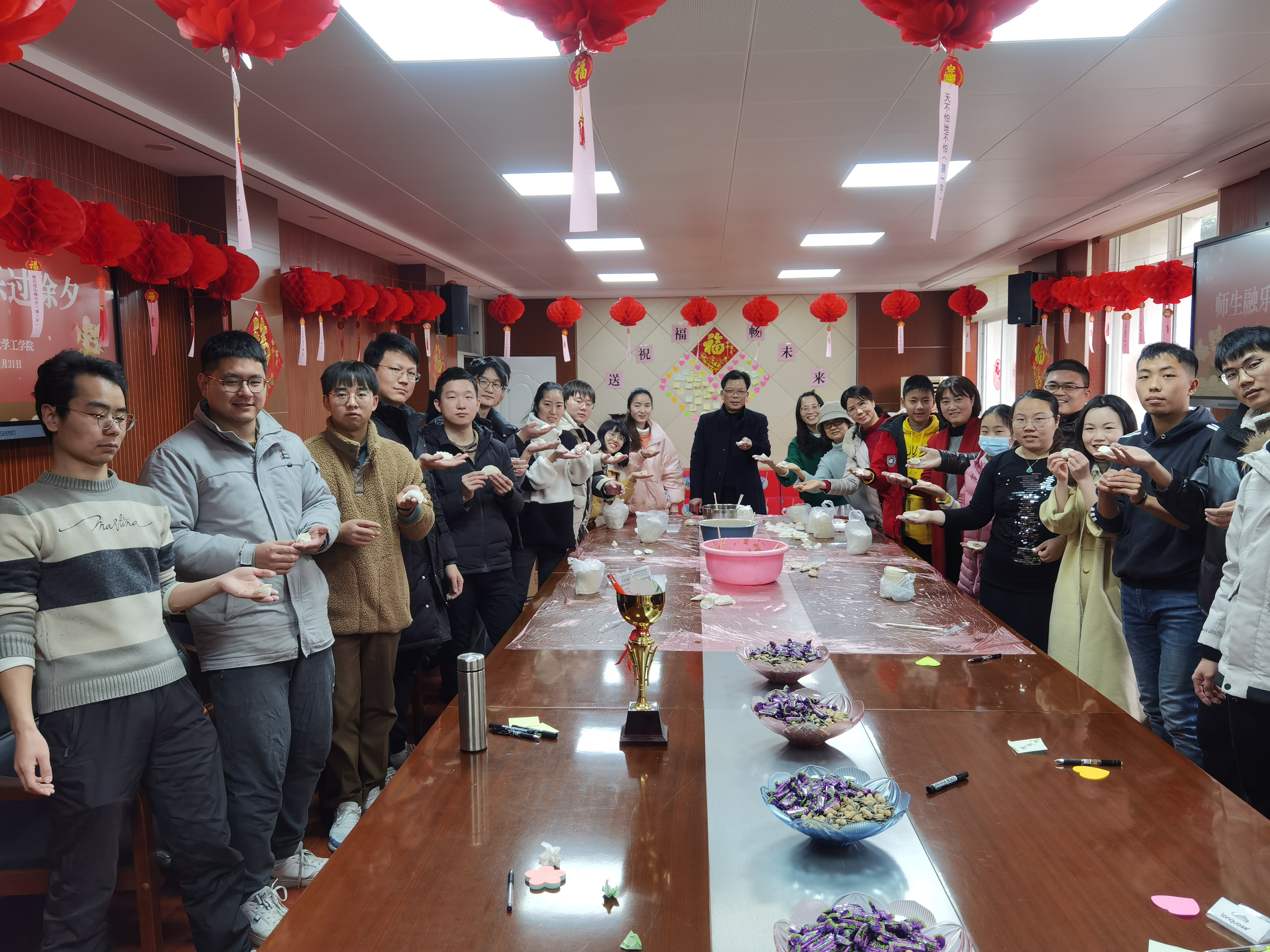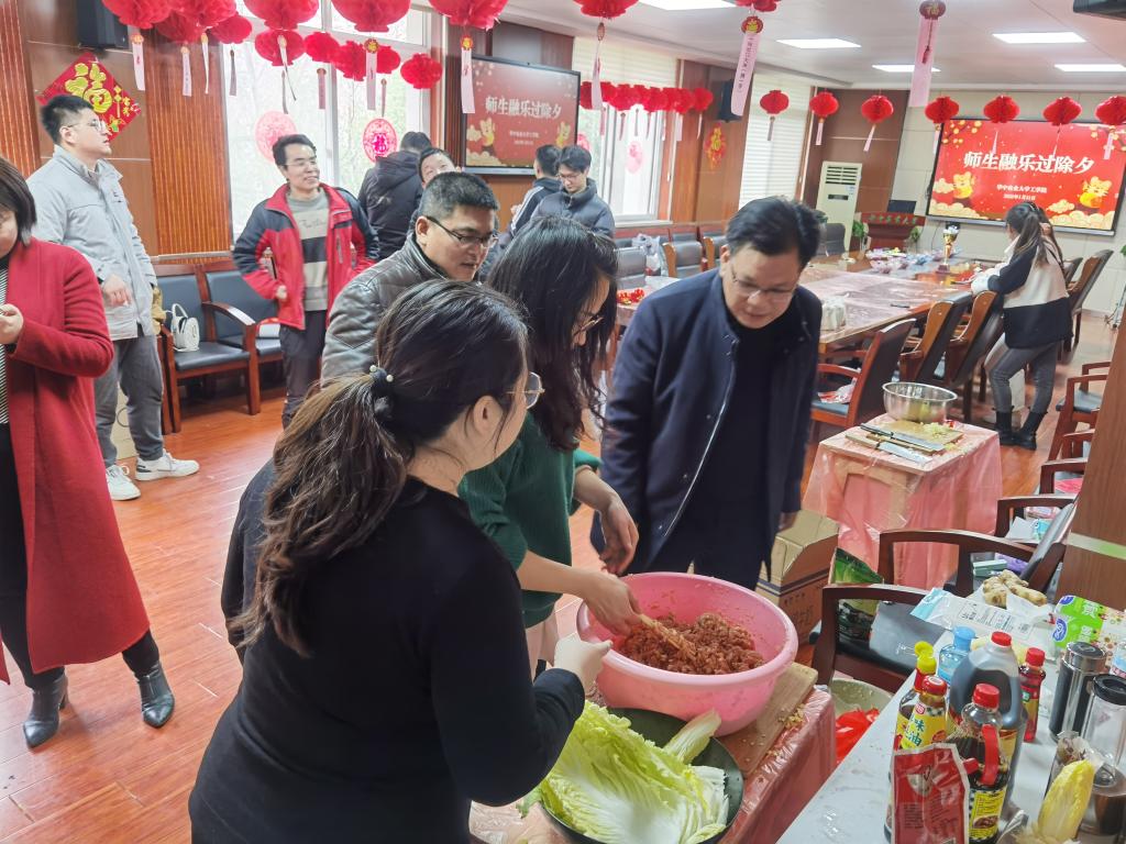 院长廖庆喜表示:“今年很多同学因为各种原因留校过年,我们老师就如同学们的父母,陪伴是最好的教育,希望同学们在老师的陪伴下能共迎新年、共话未来,在学校过一个温暖、幸福的新年。”