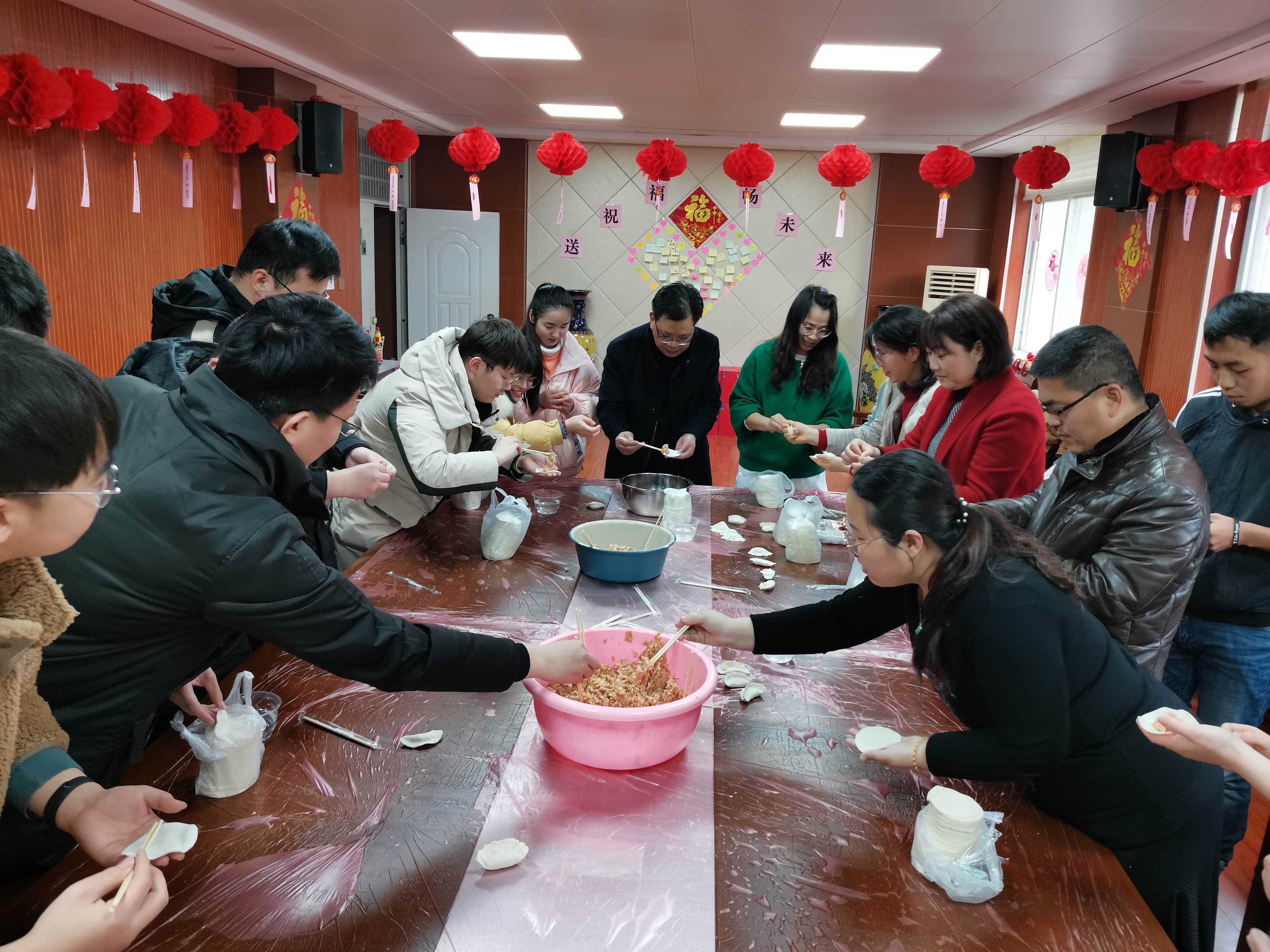院长廖庆喜教授、王巧华教授等老师与近20名留校学生一起共迎新年,共话未来。