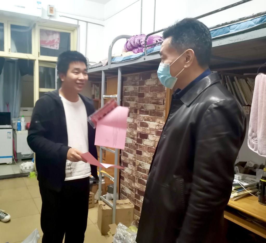 党委书记明庭庆、副书记瞿明丽前往学生寝室,将300余份“考研加油包”一一送到考研学子手中,用特别的方式为即将踏上“战场”的考研学子加油助威。