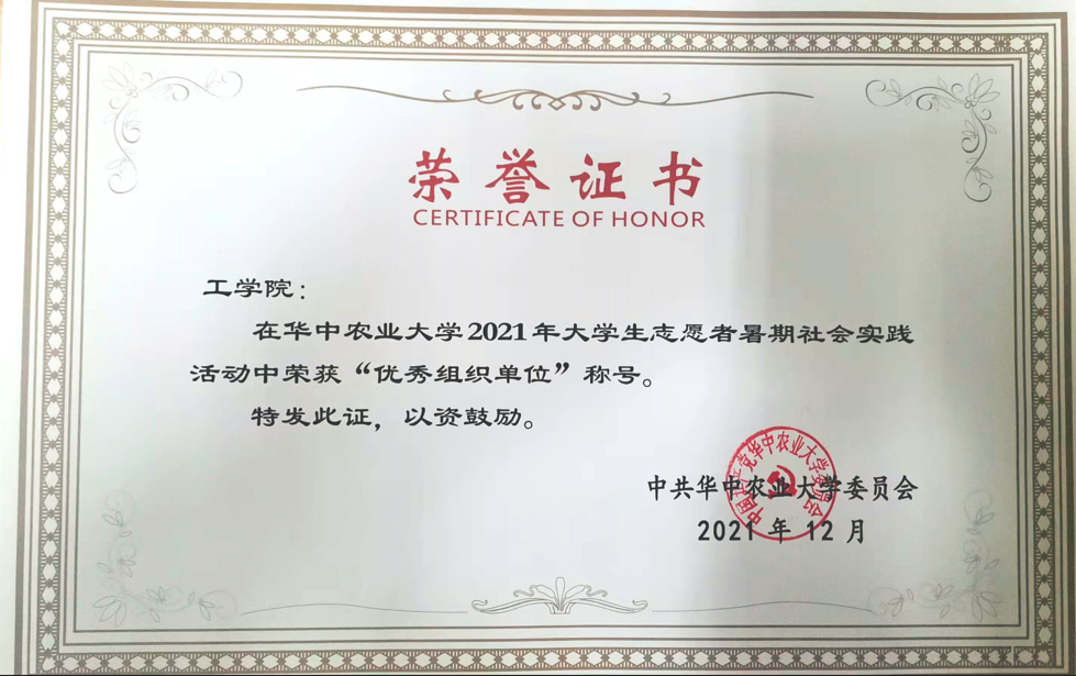 获评华中农业大学2021年暑期社会实践活动“优秀组织单位”,全校一共6个单位获得此项荣誉。周熙获评“优秀指导老师”,王凤武获评“先进工作者”,牛彦东等10名同学获评“先进个人”,篮球比分雷速