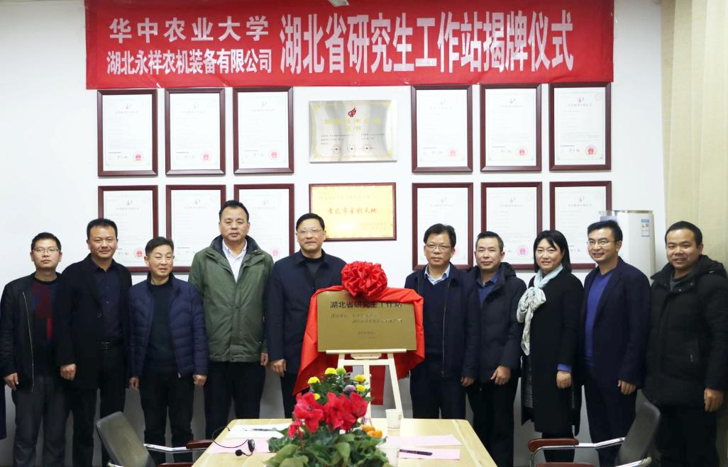 院长廖庆喜与湖北永祥农机装备有限公司总经理叶元文分别代表校企双方对湖北省研究生工作站进行了揭牌。