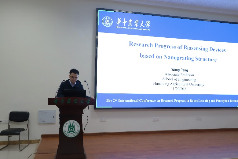 智能感知技术是机器人工程的重要基础,京都大学的Zichen Huang博士对新型温室移动机器人的位置与定位问题展开了研究,并针对超声波检测会产生额外的频移这一问题提出了一种新的多普勒信号补偿方法,最终实现温室移动机器人的声波定位。威斯康星大学的ZhouZhang教授以“基于无人机的高光谱图像预测苜蓿产量”为题做专题报告,介绍了高光谱成像和机器学习在苜蓿产量预测中的应用,相较于传统的产量评估方法,实现了有效的无损测产。加州大学的Arash Toudeshki教授围绕树木摇晃过程的振动数据的研究做了主题报告,设计了一种新型无线加速度传感器和数据记录仪系统,并阐述了该研究在林果业中的重要作用。围绕微纳米感知技术研究领域,我校彭望副教授以“基于纳米光栅结构的生物感知器件研究进展”为题做报告,介绍了基于纳米光栅结构的生物感知器件,如用于生物传感和触觉传感的光子晶体传感器,并设计制作了基于纳米光栅的柔性可拉伸光子晶体、光波导和拉曼增强器件,应用于生物信息感知、机器人触觉感知等方向。卡迪夫大学的Juan Hernandez Vega教授围绕机器人与用户请求之间的交互做了专题报告,利用处理多口译请求的方法来解决机器人的路径规划问题,并根据机器人的决策能力设计了一种通过高级用户请求指挥多用途自治系统。