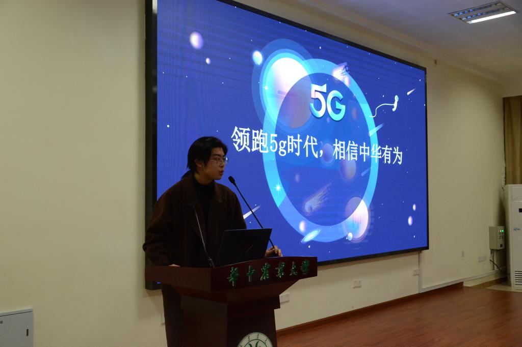 “未来我们必将在一个更加不稳定不确定的世界中谋求发展,因此不论是5G还是任何科技,不论是华为还是任何企业,我们都会秉承着中国精神,于大风大浪中劈波斩浪,于科技浪潮中一展芳华,于世界舞台上展现中华之精神。”机械2102班雷文芊同学掷地有声的演讲展现了一名新时代青年对中国科技发展的责任和担当。“家是最小国,国是千万家。”机械2104班邓扬彬同学表示,人民有信仰,国家有力量,中华民族的伟大之处便在于其斗争精神,面对一些国家的无理打压,中国人民没有屈服。机械2106班陈玉琳同学以5G技术为切入点,向同学们展示了“神十”“天宫”“嫦娥”“蛟龙〞等大国重器,号召大家心怀中国梦,努力学习,为中国创造美好的末来而贡献自己的微薄力量。