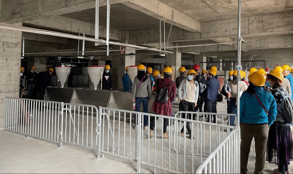 老师们先行来到中新开维现代牧业正在施工的项目现场进行了实地调研,公司负责人详细介绍了项目的总体概况、建设进度以及后续规划情况,老师们围绕舍内布局、生产工艺、养殖设备、设施结构和生产管理等方面进行了充分地交流。