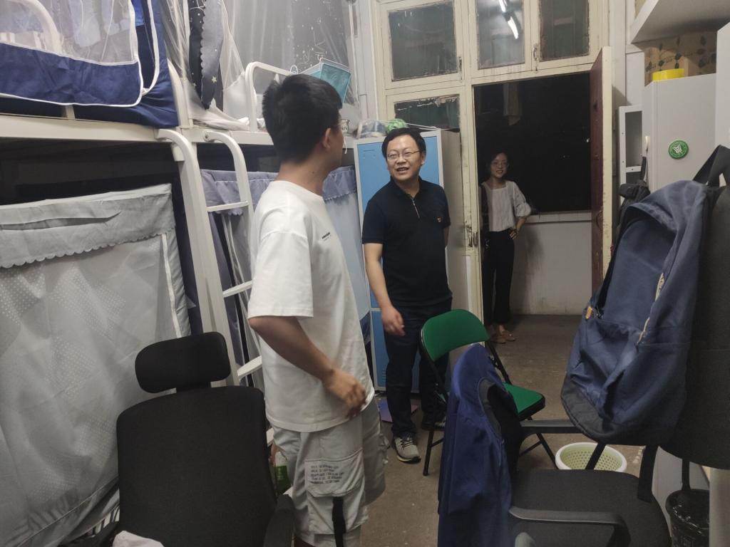 丁幼春、祝志慧、万鹏走访研究生新生宿舍并与新生交流
